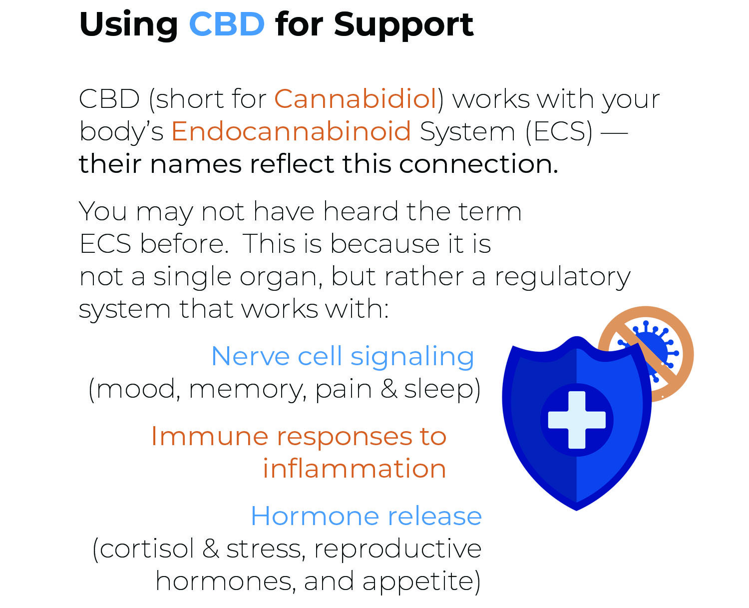 CBD (short for cannabidiol) is one of the many beneficial compounds found in the hemp plant. CBD is non-psychoactive, so it won’t change how you think or feel in that way. Instead, CBD works gently with your body to help it maintain balance.